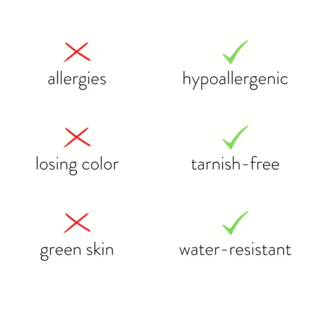 All pieces are thoughtfully made to be water-resistant, tarnish-free, and safe for sensitive skin, so you can wear them with confidence every day.